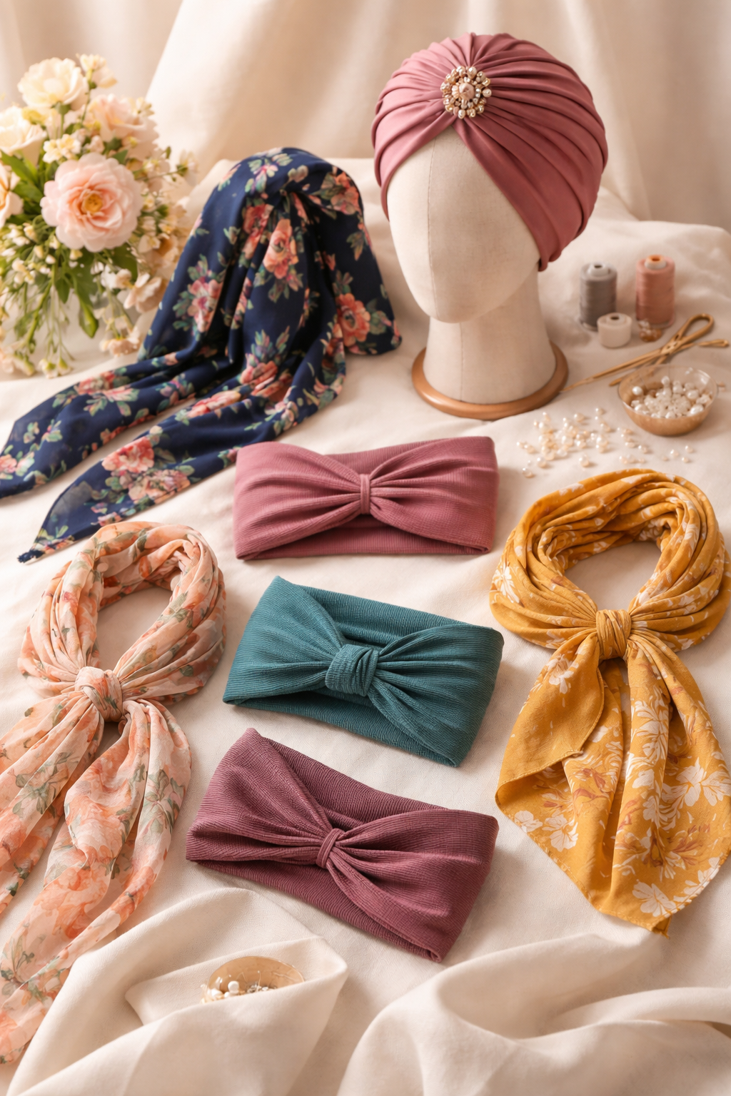 • Design and sew custom headbands and scarves